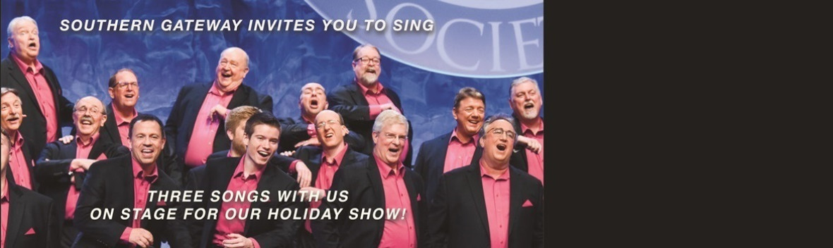 Men of any age, with or without music training, are invited to learn 3 Holiday songs and attend three one-hour Thursday night rehearsals November 13th - December 4 (excluding Thanksgiving). Then join us on stage to sing Angels We Have Heard on High, Carol of the Bells, and Jingle Bells on our Holiday Show on Saturday December 13th at Landmark Church.