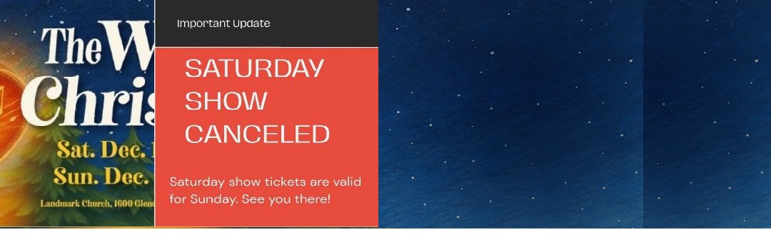 Sat. Dec. 13 at 7:00pm, Saturday's Show is Cancelled due to the weather